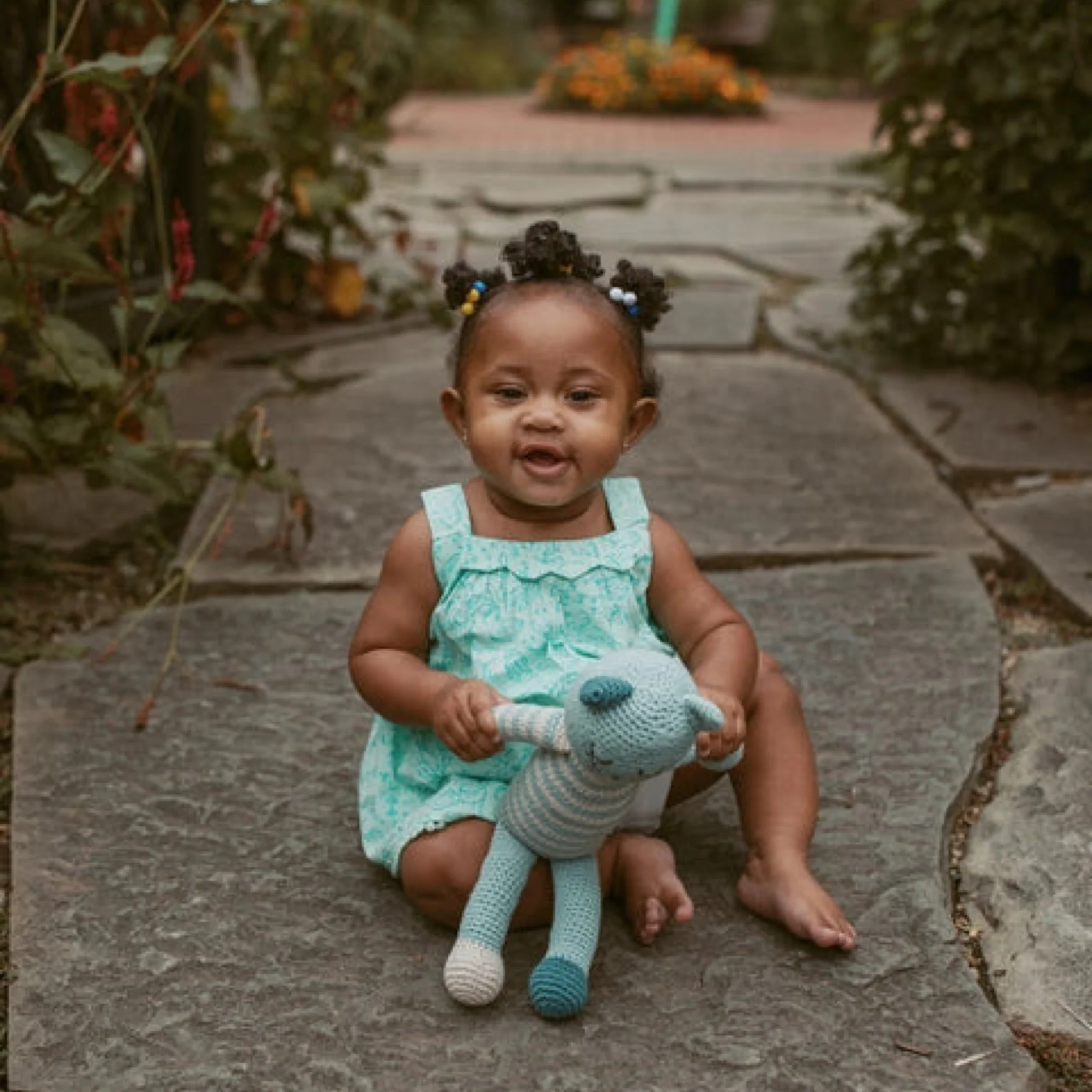✔️ Soft & Gentle – Made from 100% organic cotton with a light rattle.